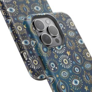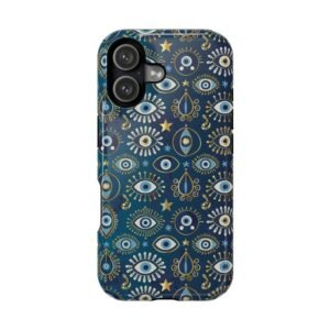Elevate your everyday carry with this striking Guardian Eye Phone Case, featuring a deep navy backdrop layered with glowing blue and gold guardian eye symbols. Designed to bring both style and positivity, the pattern represents watchfulness, clarity, and good energy—making your phone not just protected, but beautifully empowered.